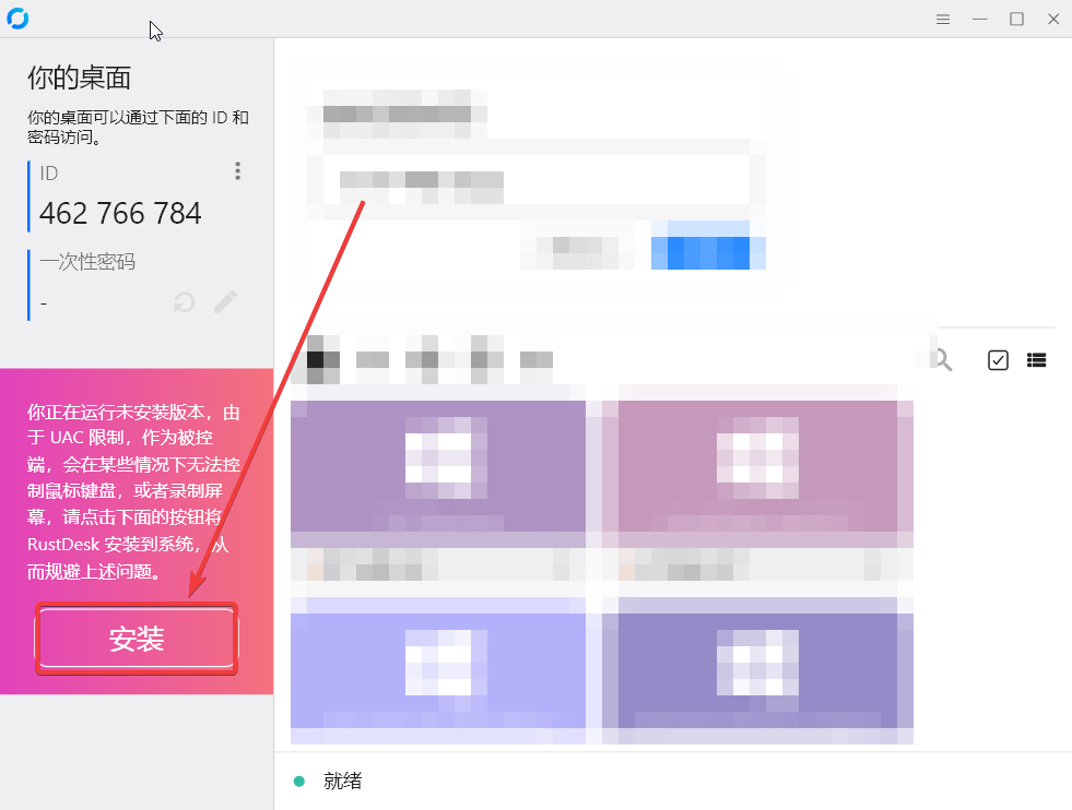 运行时在桌面找到RustDesk.使用管理员身份运行