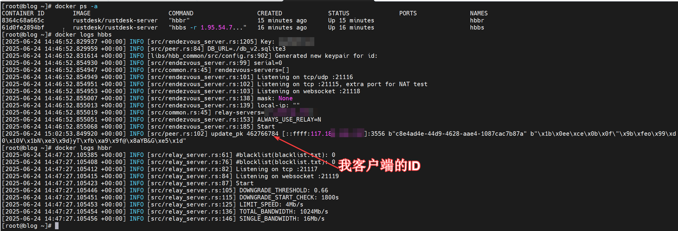 sudo docker run --name hbbr -v /root/rustdeskdata:/root -td --net=host --restart unless-stopped rustdesk/rustdesk-server hbbr最后确保容器UP