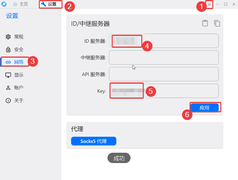 ID服务器是-r指定的内容,key填入-k指定的内容,最后点击确定。