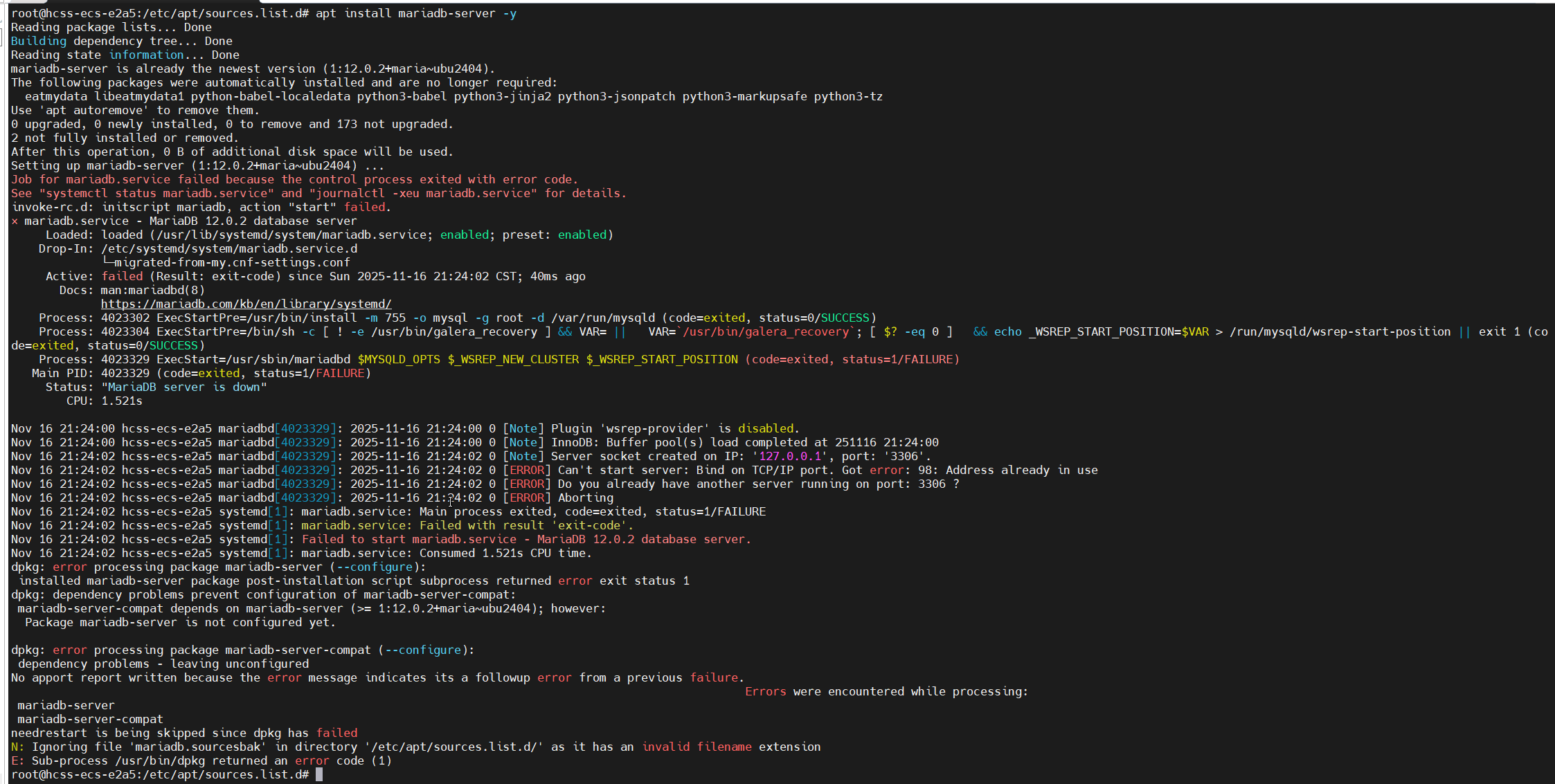 sudo apt-get install mariadb-server安装过程中遇到的问题